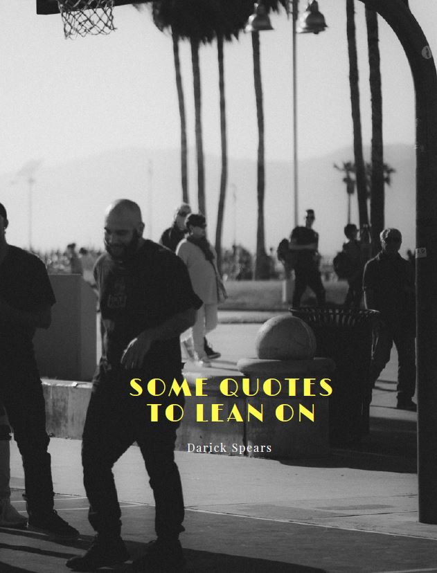 The world is full of many unique individuals who have made their mark in society. Some quotes to lean on, are great quotes compiled by Darick Spears, from great and ordinary people, who have made their stamp in history. Some inspiration for the reader. (Cover letters are pink on actual book)